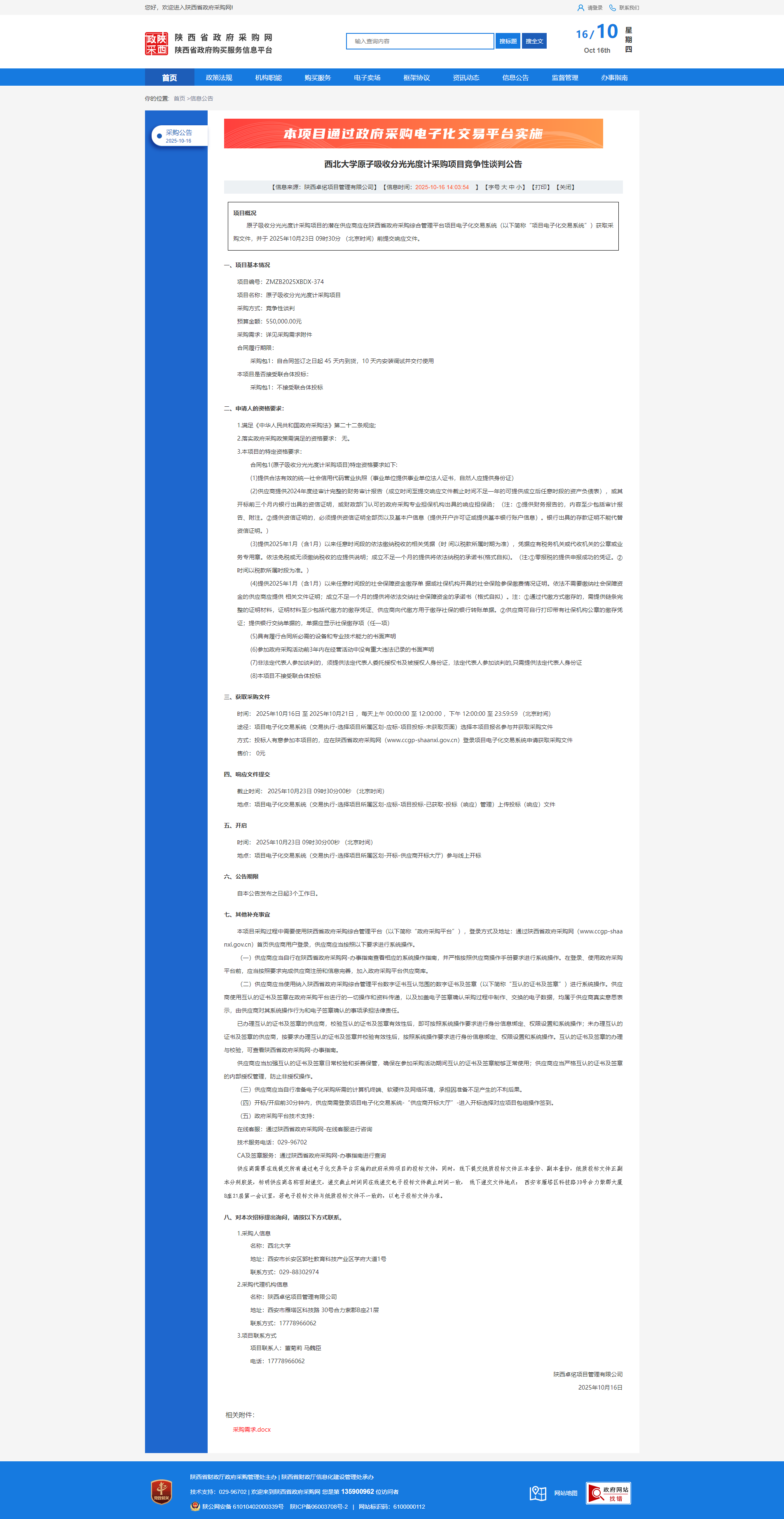 乐投平台原子吸收分光光度计采购项目竞争性谈判公告