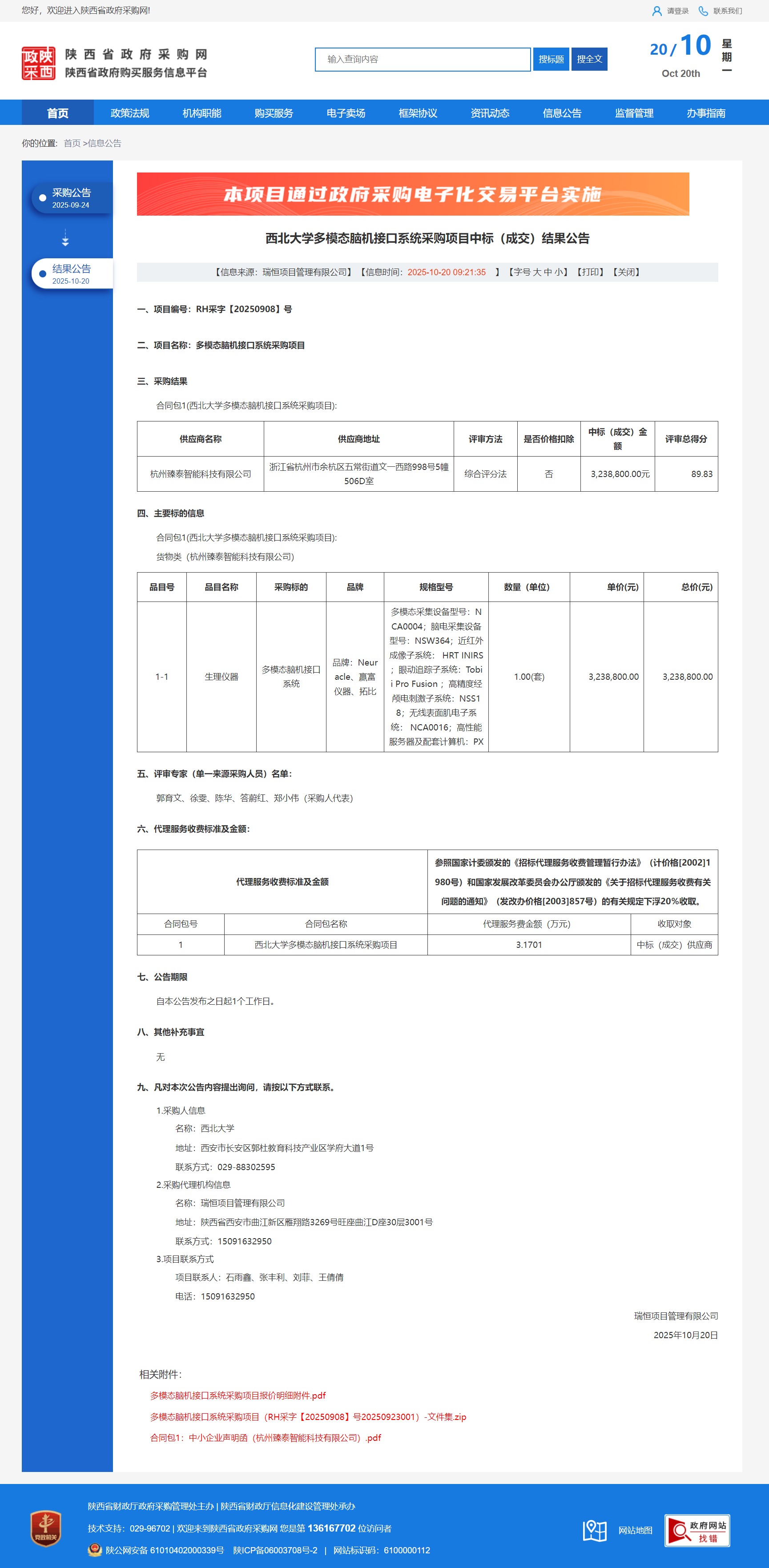 乐投平台多模态脑机接口系统采购项目中标(成交)结果公告