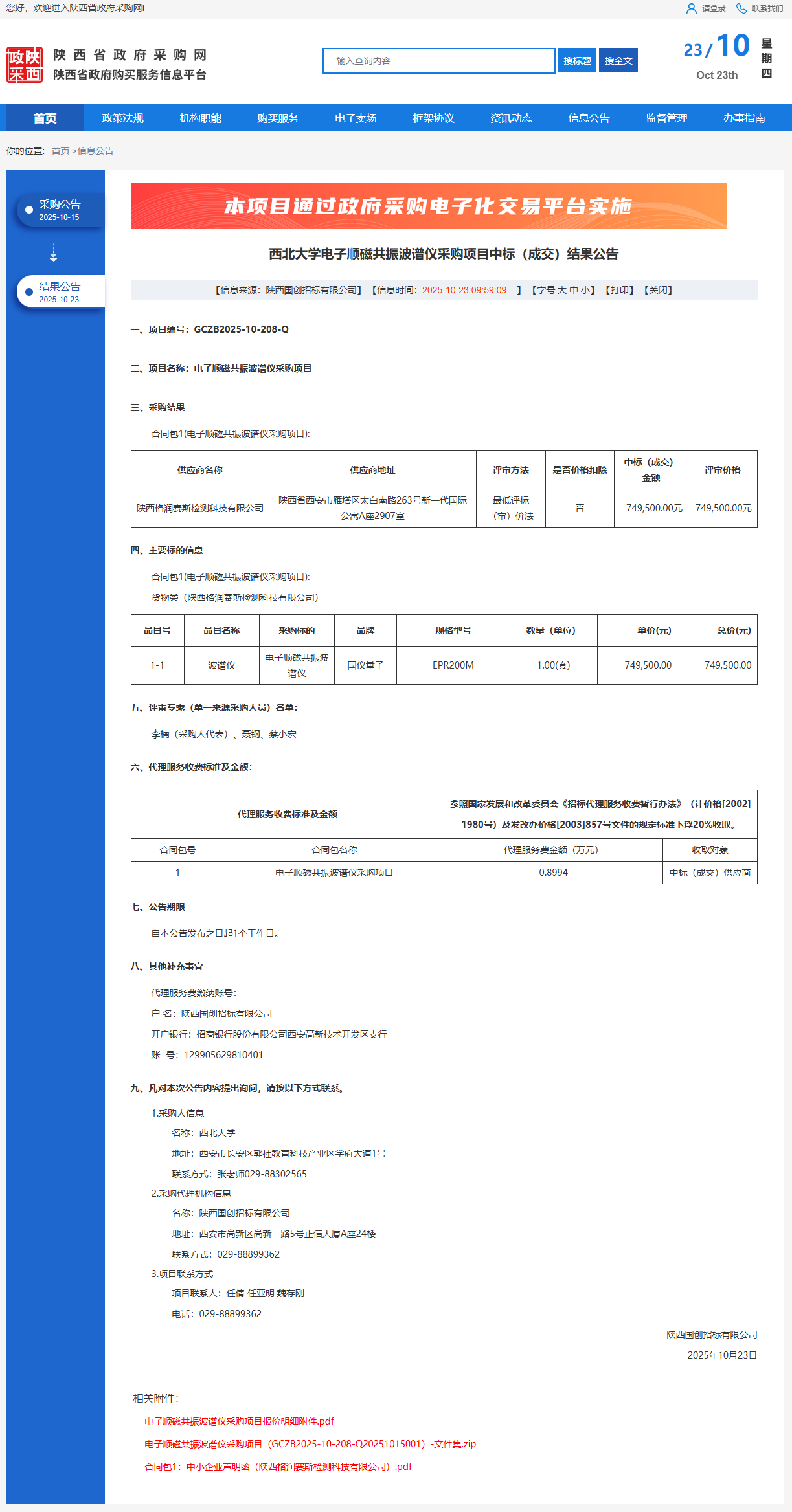 乐投平台电子顺磁共振波谱仪采购项目中标(成交)结果公告