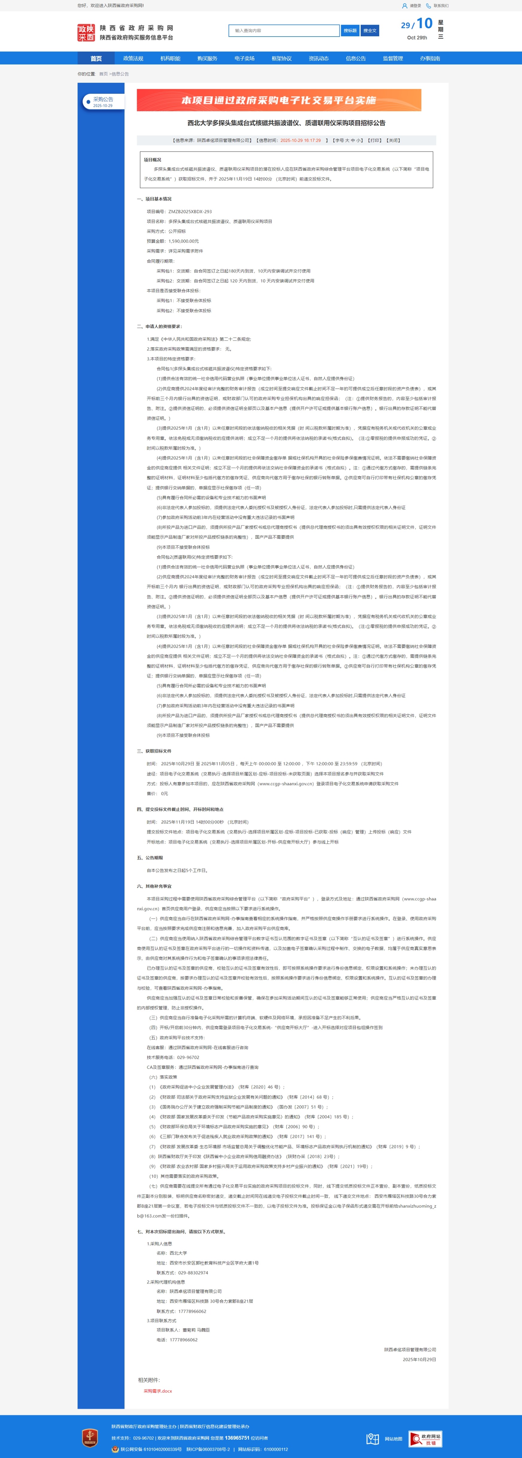 乐投平台多探头集成台式核磁共振波谱仪、质谱联用仪采购项目招标公告 作者:国有资产管理处 编辑:国有资产管理处 时间:2025-10-29 原公告链接:https://www.ccgp-shaanxi.gov.cn/freecms/site/shaanxi/ggxx/info/2025/8a69c54f99f77a8f019a2efec46e4a64.html?noticeType=001011¬iceId=e7208489-b4a1-11f0-8063-08c0eb20c666