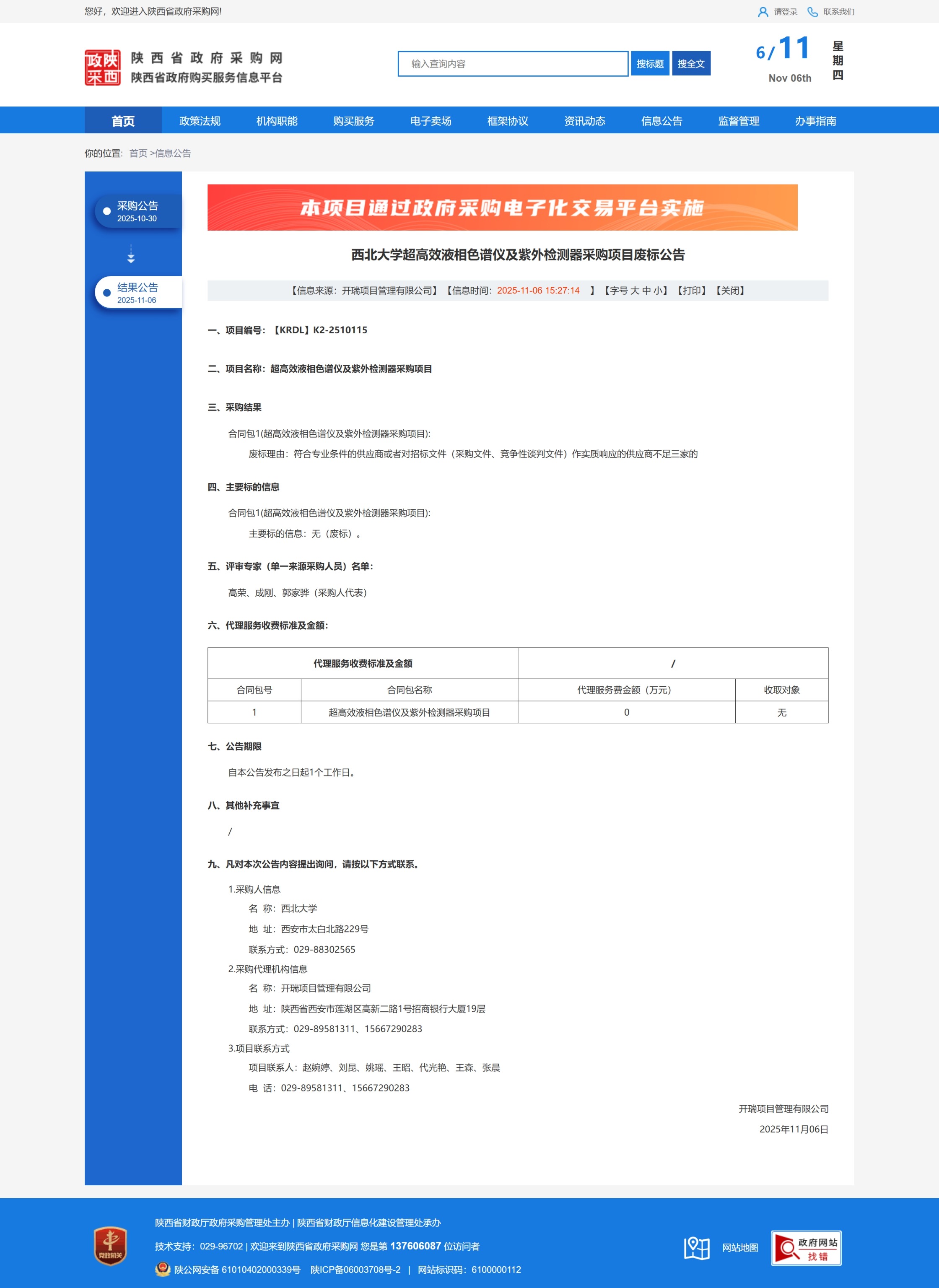 乐投平台超高效液相色谱仪及紫外检测器采购项目废标公告 作者: 编辑:国有资产管理处 时间:2025-11-06 原公告链接:https://www.ccgp-shaanxi.gov.cn/freecms/site/shaanxi/ggxx/info/2025/8a69c6c799f7737f019a5806d9fe1d4e.html?noticeType=001006¬iceId=3938e233-bae4-11f0-8063-08c0eb20c666