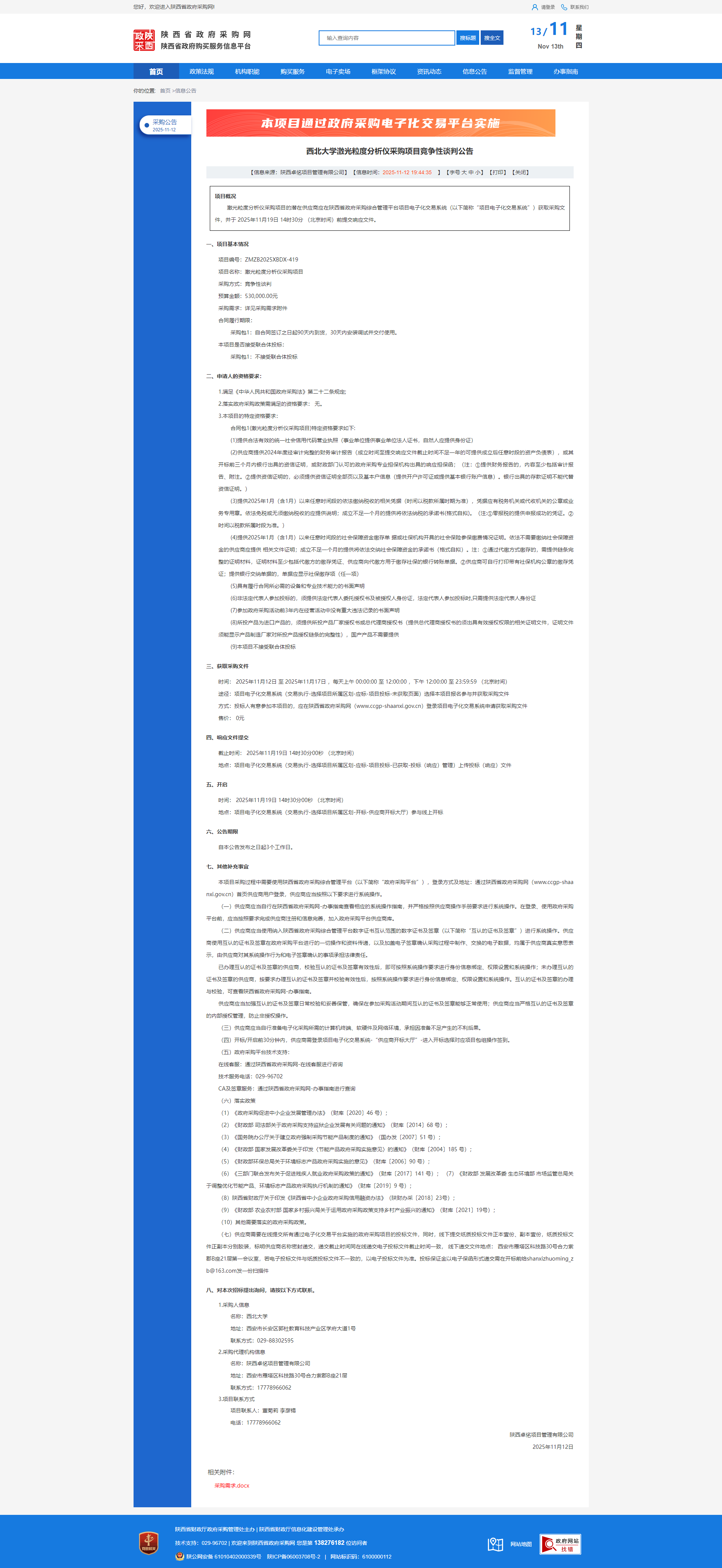 乐投平台激光粒度分析仪采购项目竞争性谈判公告