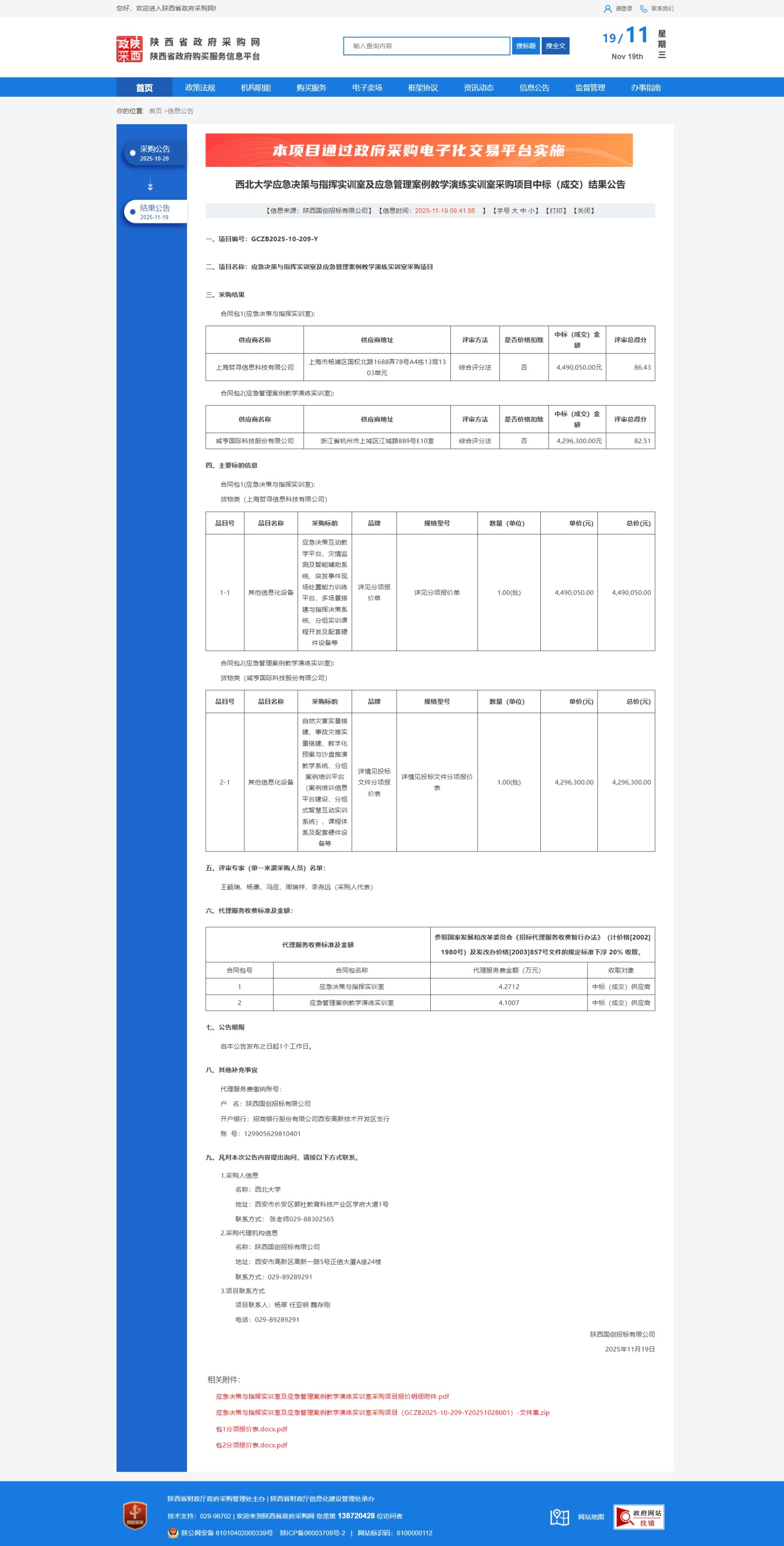乐投平台应急决策与指挥实训室及应急管理案例教学演练实训室采购项目中标(成交)结果公告 作者:国有资产管理处 编辑:国有资产管理处 时间:2025-11-19 原公告链接:https://www.ccgp-shaanxi.gov.cn/freecms/site/shaanxi/ggxx/info/2025/8a69c5539a636e42019a99b20ea100c2.html?noticeType=001021¬iceId=296ad358-c4eb-11f0-8063-08c0eb20c666