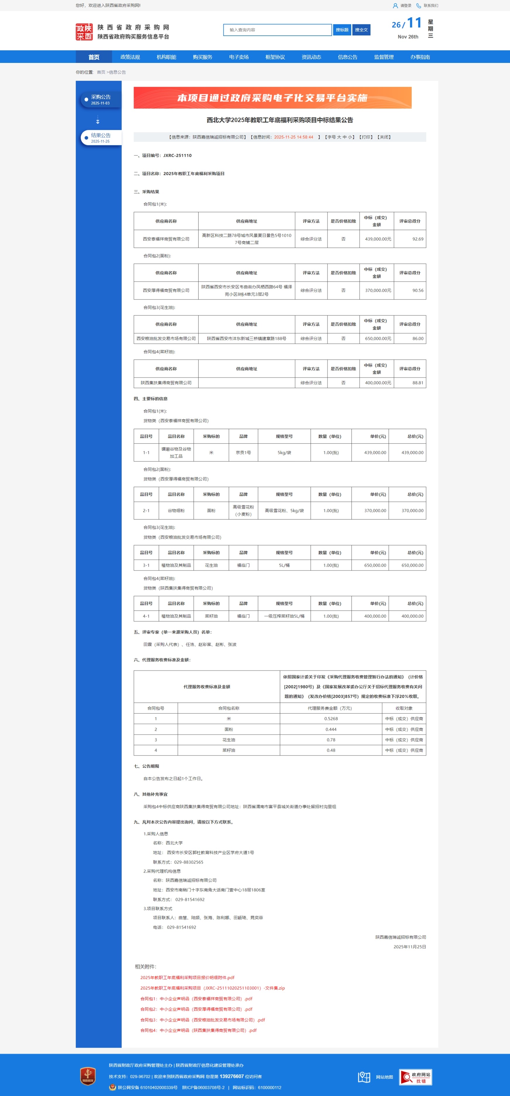 乐投平台2025年教职工年底福利采购项目中标结果公告 作者: 编辑:国有资产管理处 时间:2025-11-26 原公告链接:https://www.ccgp-shaanxi.gov.cn/freecms/site/shaanxi/ggxx/info/2025/8a69c90c9a9ae48e019ab9102509472a.html?noticeType=001021¬iceId=6c90360a-c9ce-11f0-8063-08c0eb20c666