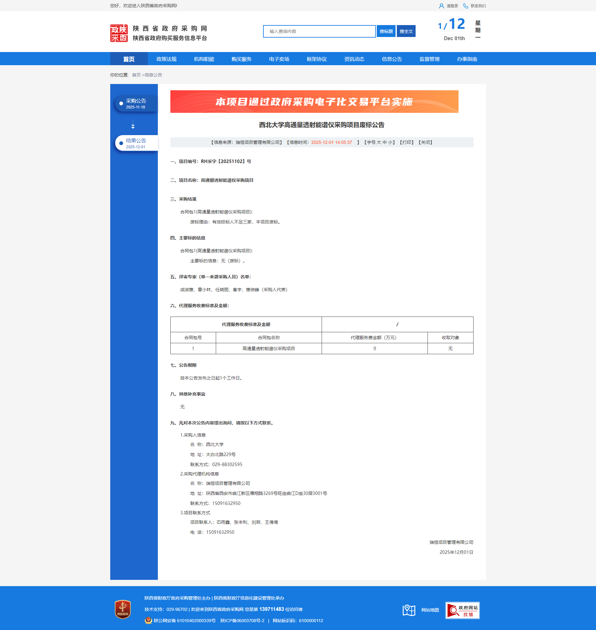 乐投平台非标记生物膜干涉分析仪采购项目(二次)中标(成交)结果公告
