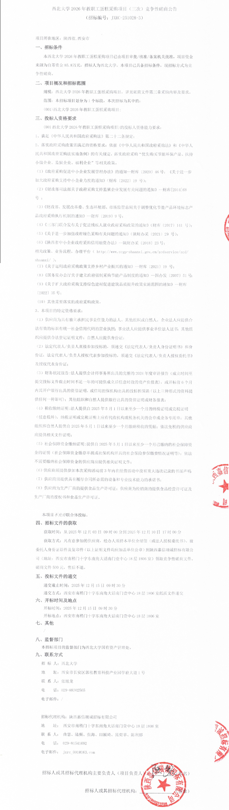 乐投平台2026年教职工蛋糕采购项目(三次)竞争性磋商公告