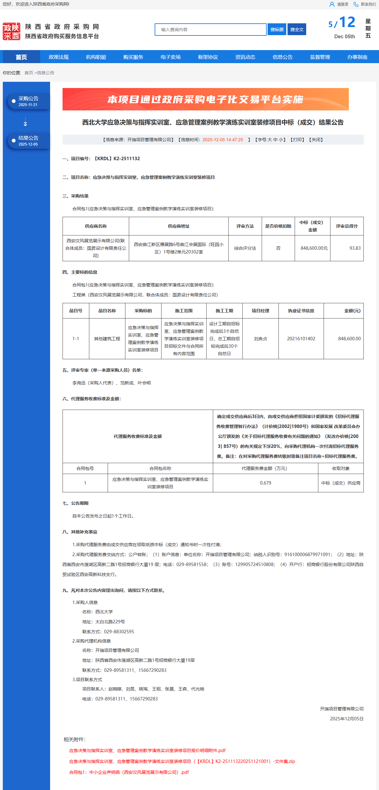 乐投平台应急决策与指挥实训室、应急管理案例教学演练实训室装修项目中标(成交)结果公告