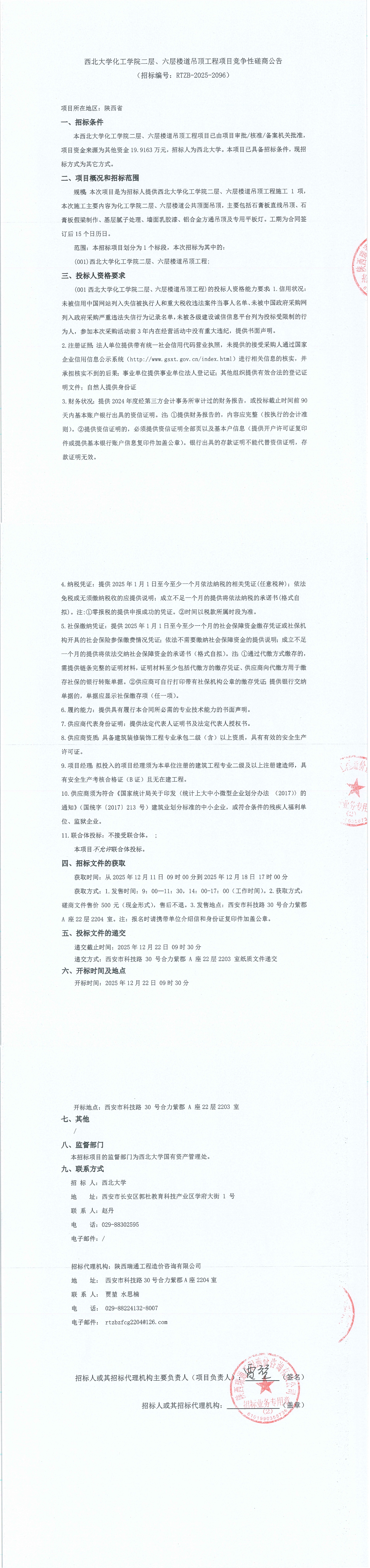 乐投平台化工学院二层、六层楼道吊顶工程项目竞争性磋商公告