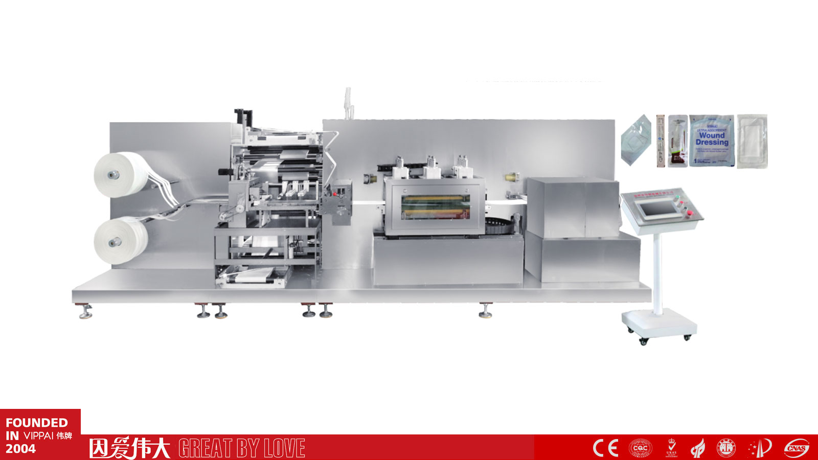 VPD300全自动多列棉片高速包装机 采用多列棉条切,加液,封合等职能动作一次完成,速度快,加液大小可调,适用各类酒精棉片,口罩,卫生巾,卡片,辅料等包装。