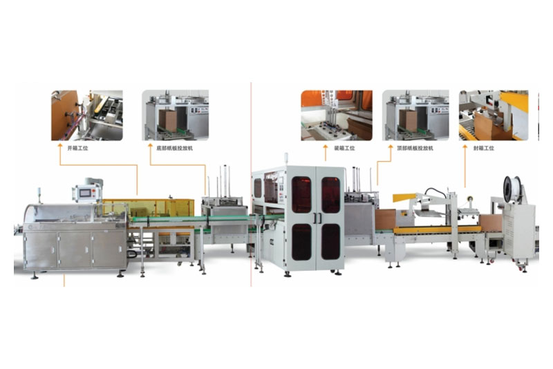 全自动装箱线 自动开箱结构:能自动进行纸箱开箱、底部折叶折曲、箱底胶带粘贴、输出等功能,经济又高效。